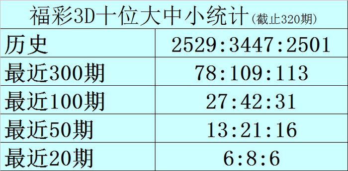 十位推选:十位在前20期开奖中号码大中小比为6:8:6,现时大号遗漏1期,中号遗漏2期,小 号遗漏0期,另花名码0-9大中小散播遗漏期数分散为:
