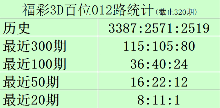 开奖追溯:福彩3D第2025320期奖号开出121。奖号类型为:组三,大小比为0:3,奇偶比为2:1,和值为4。